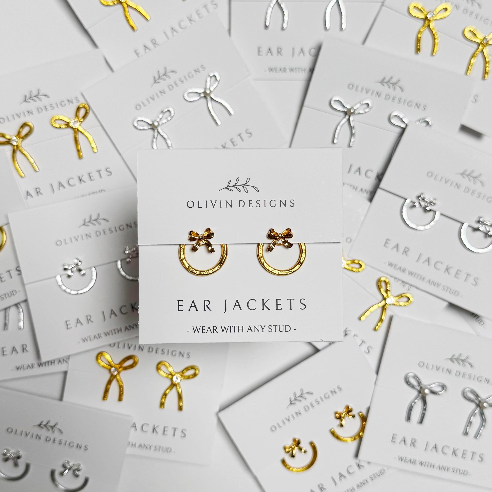 Bow Wreath Ear Jackets: Sterling Silver or 18K Gold Plated Studs